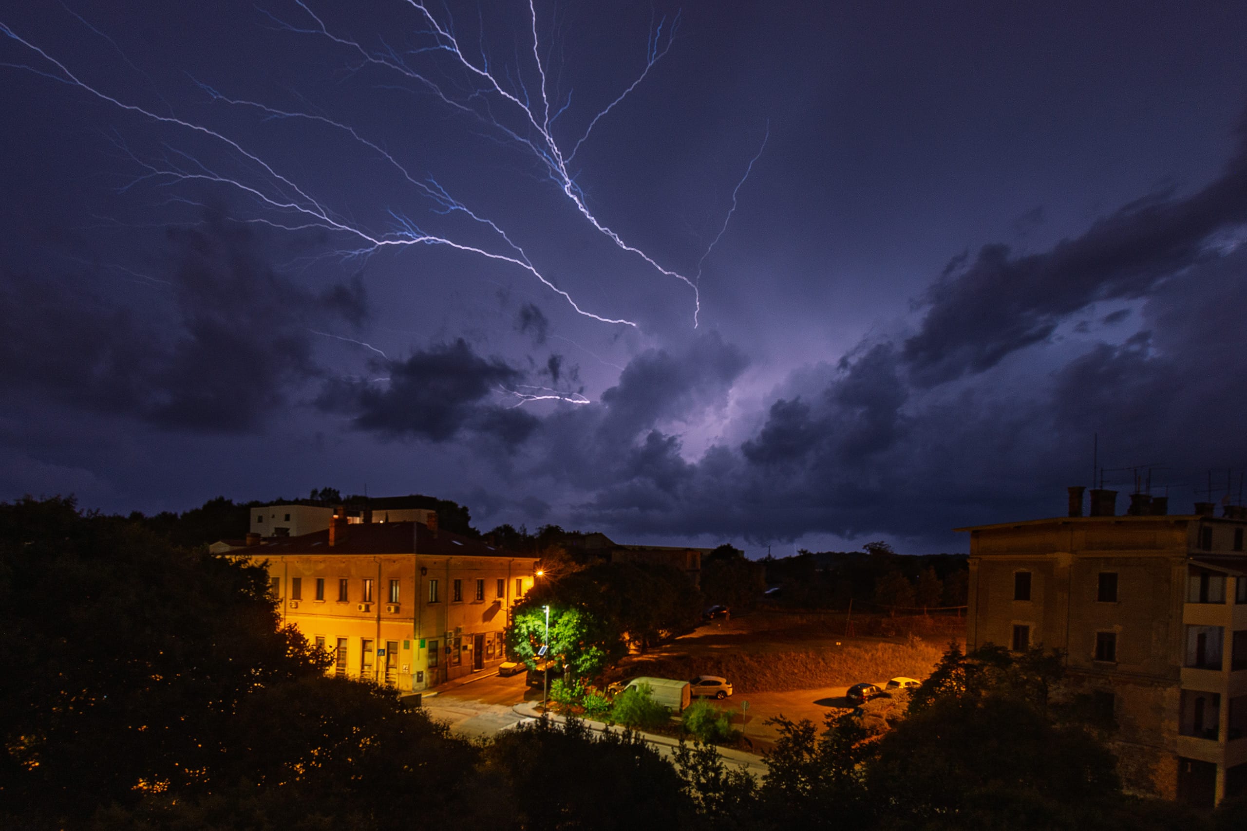 Fotografiranje noćne oluje s balkona predstavlja intimnu meditaciju u apsolutnom nebeskom kaosu. Dok kiša ispire gradske ulice, a nebo iznad Pule pulsira tom neukrotivom energijom, vi ostajete tamo – tihi promatrač naoružan objektivom, čekajući onu savršenu stotinku sekunde u kojoj se spajaju tama i zasljepljujuća svjetlost.